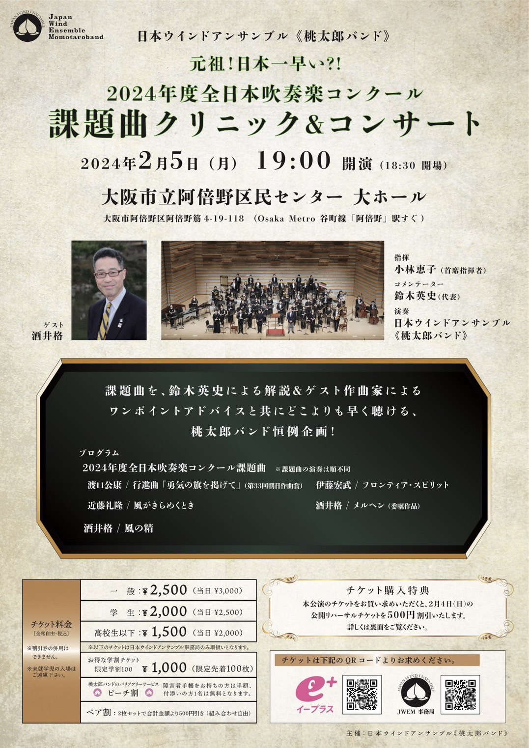 | 公演名 | 元祖!日本一早い?! 2024年度全日本吹奏楽コンクール課題曲クリニック&コンサート |